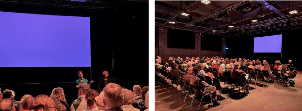li. Premierenpublikum, re. Begrüßung der Gäste. Fotos: © Mike Gessner